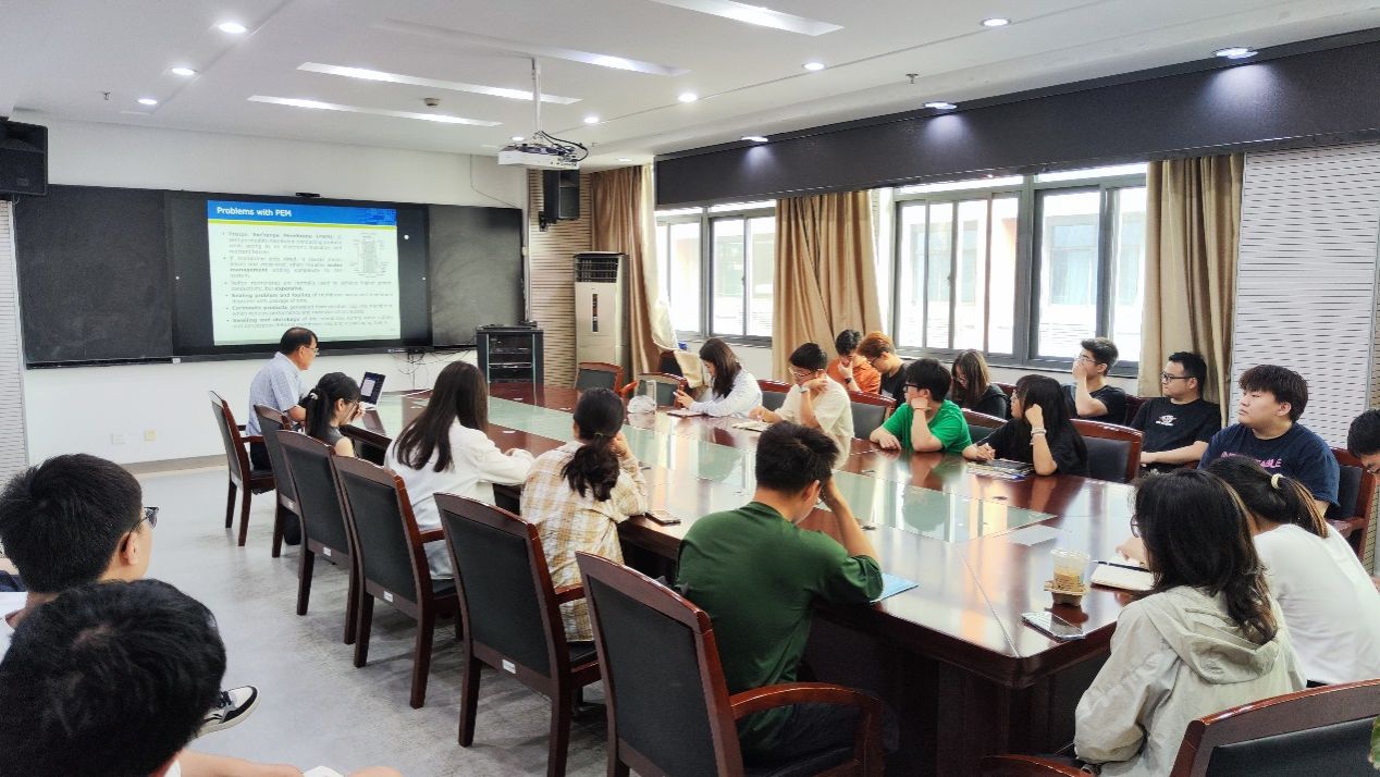 金光龙以“0ff-Design Flow Instabilities in a Centrifugal Pump with a Volute”和“Development of Flow Channels in Membraneless Microfluidic Fuel Cells”为题作精彩学术报告,分别阐述了蜗壳离心泵水力性能与流动不稳定性之间的物理机制及其优化问题、无膜微流体燃料电池流道开发的关键技术及工程应用。会后,金光龙院士与老师和研究生进行了热烈的学术互动与交流。